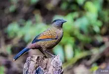 蓝翅噪鹛:噪鹛科、彩翼噪鹛属动物。中型鸟类,体长22-25厘米。上体棕橄榄褐色密被黑色鳞状斑,眼蓝白色,眼上有一长而宽阔的黑色眉纹,从眼先直到颈侧。下体棕褐色被黑色鳞状斑;尾上和尾上覆羽栗色,…全部>>