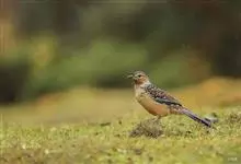 大噪鹛:中型鸟类,体长32-36厘米。额至头顶黑褐色,背栗褐色满杂以白色斑点,斑点前缘或四周还围有黑色。初级覆羽、大覆羽和初级飞羽具白色端斑。尾特长,均具黑色亚端斑和白色端斑。颏、喉棕褐色,…全部>>