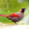 赤尾噪鹛中型鸟类,体长24~28厘米。头顶至后颈红棕色,两翅和尾鲜红色,眼先、眉纹、颊、颏和喉黑色,眼后有一灰色块斑。其余上下体羽大都暗灰或橄榄灰色。特征极明显,特别是通过鲜红色的头顶、翅和尾。…全部>>
