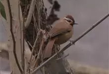白颊噪鹛是雀形目噪鹛科噪鹛属鸟类,又称土画眉、小画眉、小噪鹃。成鸟额至头顶栗褐色,长眉纹、眼先和颊纹棕白色,眼后至耳羽深褐色,…全部>>