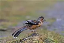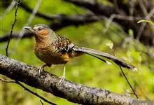 大噪鹛:中型鸟类,体长32-36厘米。额至头顶黑褐色,背栗褐色满杂以白色斑点,斑点前缘或四周还围有黑色。初级覆羽、大覆羽和初级飞羽具白色端斑。尾特长,均具黑色亚端斑和白色端斑。颏、喉棕褐色,…全部>>