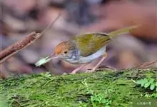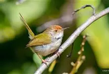 普通缝叶莺,是雀形目鹅科莺亚科缝叶莺属一种。体长10-14厘米,体重7-10克,雄鸟前额棕红,头顶至枕棕橄榄褐,上体橄榄绿染黄,飞羽及尾羽暗褐;繁殖期雄鸟的中央尾羽特形延长,下体淡皮黄白色。…全部>>