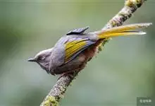橙翅噪鹛:是噪鹛科、彩翼噪鹛属的中型鸟类,体长22-25厘米。头顶深葡萄灰色或沙褐色。上体灰橄榄褐色,外侧飞羽外翈蓝灰色、基部橙黄色,中央尾羽灰褐色,外侧尾羽外翈绿色而缘以橙黄色并具白色端斑。…全部>>