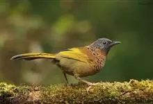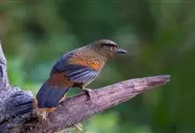 蓝翅噪鹛:噪鹛科、彩翼噪鹛属动物。中型鸟类,体长22-25厘米。上体棕橄榄褐色密被黑色鳞状斑,眼蓝白色,眼上有一长而宽阔的黑色眉纹,从眼先直到颈侧。下体棕褐色被黑色鳞状斑;尾上和尾上覆羽栗色,…全部>>