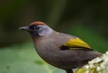 红头噪鹛中型鸟类,体长22~28厘米。头顶棕红色,眼先、脸、颏、喉黑色,上体橄榄色或棕橄榄褐色,外侧飞羽金黄色,尾羽基部亦为金黄色,下体多为暗橄榄褐色。该种和赤尾噪鹛较为相似,…全部>>
