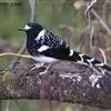 斑背燕尾是鹟科、燕尾属中型鸟类,体长24-25厘米。额至头顶前部白色,其余头、颏、喉、胸黑色,后颈有一白领,背黑色具圆形白色斑点,腰白色,两翅黑色具白色翅斑,尾呈深叉状,黑色、具白色端斑。…全部>>