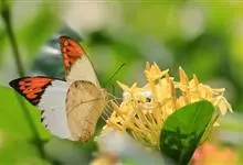 鹤顶粉蝶是鳞翅目粉蝶科鹤顶粉蝶属昆虫,又称端红蝶。雄蝶翅白色,前翅前缘及外缘黑色,自前缘二分之一处至外缘近后角处有黑色锯齿状斜纹,围住顶部三角形赤橙色斑,…全部>>