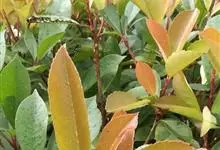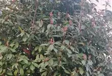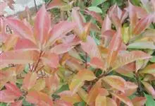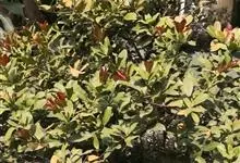 红叶石楠 是蔷薇科,石楠属杂交种,为常绿小乔木或灌木,乔木高可达5米、灌木高可达2米。叶片革质,长圆形至倒卵状、披针形,叶端渐尖,叶基楔形,叶缘有带腺的锯齿,花多而密,复伞房花序,花白色,梨果黄红色,…全部>>