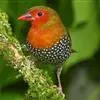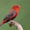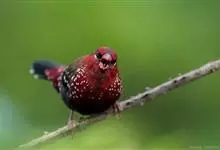 红梅花雀小型鸟类,体长9-10厘米。雄鸟通体朱红色,背、肩、胸等满布白色小斑点,两翅和尾黑褐色均具白色端斑,嘴红色,脚蜡黄色。雌鸟上体淡褐色或赭褐色,翅上中覆羽、大覆羽和内侧飞羽末端具白色斑点,…全部>>