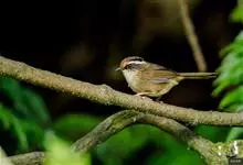 褐胁雀鹛,是莺科、雀鹛属的鸟类。褐胁雀鹛是小型鸟类,体长13-15厘米。头顶棕褐色,黑色侧冠纹和宽阔的白色眉纹,眼先黑色。上体包括两翅和尾橄榄褐色。颏、喉、胸、腹白色,腹和胸沾皮黄色,两胁橄榄褐色,…全部>>