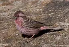 藏朱雀:全长约17-18厘米。雄鸟头部深红色具光辉,喉部暗红色具白色点斑;背部灰白色,各羽具玫瑰红色羽端,形成许多斑纹;腰部淡玫瑰红色;翅暗褐色,沾灰白,羽端沾玫瑰红或灰白色;尾暗棕色,端缘玫瑰红色…全部>>