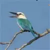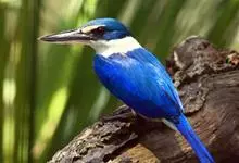白领翡翠:有50个亚种。体长18厘米,体重35-40克。是一种蓝白色翡翠鸟。头顶、两翼、背及尾呈亮丽蓝绿色;过眼纹黑色;眼先黑色,眼眉白色或浅黄色,嘴上部具白点。以白色的颈环及下体为识别特征。…全部>>