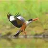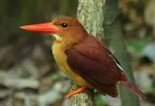 赤翡翠:是佛法僧目翠鸟科的鸟类。共有10个亚种。体长25-27厘米,体重76-77 克。头、颈、背、腰尾上覆羽、尾羽棕赤色,是翡翠亚科中分布最北的成员,虽然其主要分布区位于东南亚地区,…全部>>