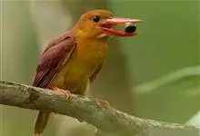 赤翡翠:是佛法僧目翠鸟科的鸟类。共有10个亚种。体长25-27厘米,体重76-77 克。头、颈、背、腰尾上覆羽、尾羽棕赤色,是翡翠亚科中分布最北的成员,虽然其主要分布区位于东南亚地区,…全部>>