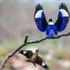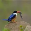 蓝翡翠是佛法僧目翠鸟科翡翠属鸟类。嘴粗长似凿,基部较宽,嘴峰直;翼圆。体色以蓝色、白色及黑色为主;额、头顶、头侧和枕部黑色;后颈白色,向两侧延伸与喉胸部白色相连,…全部>>