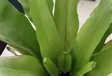 巢蕨是铁角蕨科铁角蕨属的中型附生草本植物。植株高1-1.2米;根状茎直立,深棕色;叶簇生,叶柄呈浅禾秆色,叶片呈阔披针形,干后灰绿色,两面均无毛;孢子囊群呈线形,生于小脉的上侧;囊群盖呈线形,浅棕色。…全部>>