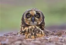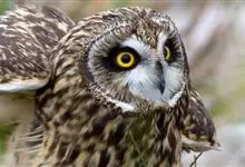 短耳鸮又名小耳木兔、田猫王、夜猫子等,是鸮形目鸱鸮科耳鸮属中小型猛禽动物。成鸟面盘显著,眼周黑色;眼先及内侧眉纹灰白色,面盘余部棕黄色杂以黑色细羽干纹;耳簇羽短小而几乎不外露,…全部>>