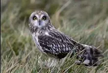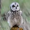 短耳鸮又名小耳木兔、田猫王、夜猫子等,是鸮形目鸱鸮科耳鸮属中小型猛禽动物。成鸟面盘显著,眼周黑色;眼先及内侧眉纹灰白色,面盘余部棕黄色杂以黑色细羽干纹;耳簇羽短小而几乎不外露,…全部>>