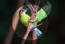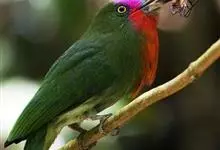 蓝须夜蜂虎是佛法僧目、蜂虎科的鸟类,体长约30厘米,是绿色林栖型蜂虎,蓝色的胸羽蓬松,嘴厚重而下弯。成鸟顶冠淡蓝,腹部棕黄带绿色纵纹。尾羽腹面黄褐。亚成鸟全身绿色。喉、胸部中央的羽甚长和亮色;该物种…全部>>