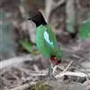 绿胸八色鸫:是雀形目八色鸫科的鸟类,共有12个亚种。体长为16-18厘米,体重65-69克。体型圆胖,尾短,腿长。头黑,上体绿色,两翼深色而具白色斑纹,头顶至后枕深褐,胸及腹部苹果绿,臀亮红。…全部>>