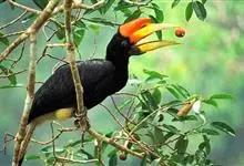 赭红尾鸲:小型鸟类,体长13-16厘米。雄鸟前额、头侧、颈侧、颏至胸概黑色,头顶和背灰色或黑色,腰、尾上覆羽、尾下覆羽、外侧尾羽和腹栗棕色,中央尾羽褐色,两翅黑褐色。雌鸟上体和两翅淡褐色,…全部>>