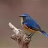 红胁蓝尾鸲俗名:蓝点冈子、蓝尾巴根子、蓝尾杰、蓝尾欧鸲。体型略小而喉白的鸲。特征为橘黄色两胁与白色腹部及臀成对比。雄鸟上体蓝色,眉纹白;亚成鸟及雌鸟褐色,尾蓝。…全部>>