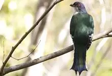 斑翅凤头鹃: 成鸟具羽冠,上体及头侧、翅、尾等黑色,具铁绿色亮辉,尾羽端部具白斑,两侧者形宽,中央者较狭;下体白色、淡灰白或略带棕黄色。虹膜褐至红褐色;嘴黑色;脚灰蓝黑色。…全部>>