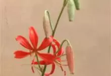 山丹是百合科百合属的多年生草本植物。鳞茎卵形或圆锥形,鳞片长圆形或长卵形,白色;叶散生茎中部,线形,边缘有乳头状突起;花单生或数朵成总状花序,花鲜红色,常无斑点,花被片反卷,…全部>>