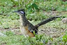 走鹃是杜鹃科、走鹃属动物。中型鸟类,体长50-62厘米,体重220-340克。羽毛为橄榄褐和白色相间,有一条纹;羽冠非常短而且蓬松。眼后的皮肤裸露着,蓝红相间,它的腿非常粗壮,呈浅蓝色;尾巴比较长,…全部>>