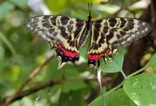 亚历山大女皇鸟翼凤蝶,又称大鸟翼蝶,是鳞翅目凤蝶科鸟翼蝶属蝴蝶;翅膀圆阔、褐色,雌性翅膀上会点缀着耀眼的白色斑纹;雄性翅膀上则闪耀着红蓝色的光泽。亚历山大女皇鸟翼凤蝶幼时很黑,身上长有红色的结节,…全部>>