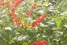 一串红,又称爆仗红、象牙红,为唇形科鼠尾草属植物。花序修长,色红鲜艳,花期又长,适应性强,为中国城市和园林中最普遍栽培的草本花卉。原产巴西、南美洲。喜温暖和阳光充足环境。不耐寒,耐半阴,忌霜雪和高温,…全部>>