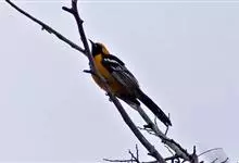 金黄鹂是中型鸣禽。体长24厘米。头全黄色。体羽鲜丽,主要由为黄和黑的颜色组合,雌鸟与幼鸟多具条纹。雄性成鸟眼先、翼及尾基部黑色,其余为鲜亮黄色。雌鸟较暗淡而多绿色。幼鸟偏绿色,下体具细密纵纹。虹膜红…全部>>