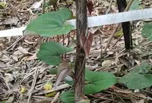 薯蓣是缠绕草质藤本。块茎为长圆柱形,垂直生长,长可达1米多,断面干时白色。茎通常带紫红色,右旋,无毛。单叶,在茎下部的互生,顶端渐尖,基部深心形、宽心形或近截形,边缘常3浅裂至3深裂。叶腋内常有珠芽。…全部>>