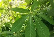 木薯,为大戟科木薯属的一种直立灌木,又名木番薯、树薯。木薯高1.5-3米;块根圆柱状。叶纸质,轮廓近圆形;裂片倒披针形至狭椭圆形;托叶三角状披针形。圆锥花序顶生或腋生,花萼带紫红色且有白粉霜。…全部>>