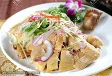 白切鸡又叫白斩鸡,是粤菜系鸡肴中的一种,始于清代的民间酒店。属浸鸡类。其特点为制作简易,刚熟不烂,不加配料且保持原味。白切鸡通常选用三黄鸡与沙姜、蒜茸、葱等食材,慢火煮浸后,晾干切块。成菜后,…全部>>
