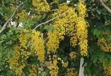腊肠树:是豆科腊肠树属植物。落叶乔木,高可达15米;枝细长;树皮灰色,老时粗糙,暗褐色。叶长30-40厘米,小叶对生,薄革质,阔卵形,卵形或长圆形,边全缘,幼嫩时两面被微柔毛,老时无毛;叶脉纤细,…全部>>