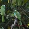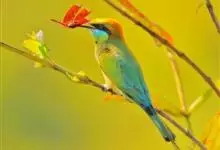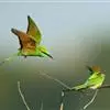绿喉蜂虎是佛法僧目、蜂虎科的小型鸟类,共有9个亚种。身长22-25厘米,翼展29-30厘米,体重15-20克。喉绿色,额部、头顶至上背为锈红色,其余上体均为亮绿色。中央尾羽延长且端段狭细,…全部>>