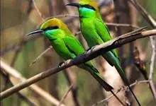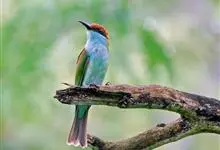 绿喉蜂虎是佛法僧目、蜂虎科的小型鸟类,共有9个亚种。身长22-25厘米,翼展29-30厘米,体重15-20克。喉绿色,额部、头顶至上背为锈红色,其余上体均为亮绿色。中央尾羽延长且端段狭细,…全部>>