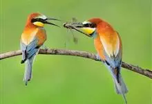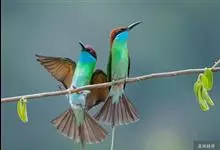 栗喉蜂虎是蜂虎科蜂虎属的鸟类。有热带鸟类羽毛艳丽的特征:喉部是栗红色的,黑色的过眼纹,翅膀和背部是绿色的,尾翼是蓝色的,飞行时翅膀下面的羽毛是橙黄色的,在阳光的照射下,它们全身闪烁着金属般的艳丽光泽,…全部>>