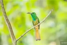 蓝喉蜂是蜂虎科蜂虎属鸟类。体长26-28厘米,嘴长而弯曲,有明显细长的中央尾羽。头部、颈部和背部为巧克力色,有黑色眼纹。喉部、腰部和尾羽为蓝色。腹部和两翼为绿色。幼鸟外观似成鸟,头部、颈部和背部为绿色,…全部>>