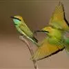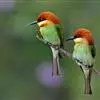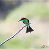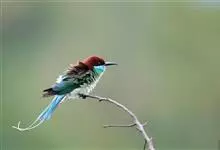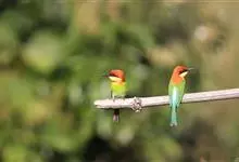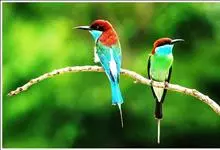 绿喉蜂虎是佛法僧目、蜂虎科的小型鸟类,共有9个亚种。身长22-25厘米,翼展29-30厘米,体重15-20克。喉绿色,额部、头顶至上背为锈红色,其余上体均为亮绿色。中央尾羽延长且端段狭细,…全部>>