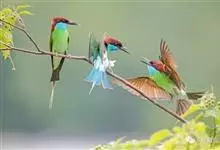 蓝颊蜂虎:是蜂虎科、蜂虎属的鸟类,共有2个亚种。体长27-33厘米,翼展46-49厘米,体重38-50克。嘴形细长而下弯,先端尖,…全部>>