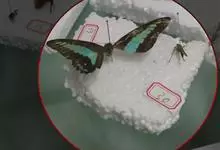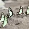 青带凤蝶Graphium sarpedon ,又名青凤蝶,是最普遍的中型凤蝶,飞行速度很快。青带凤蝶的翅膀中央有许多浅蓝色的斑点,很整齐地排列成一条直线。这些斑点由上而下逐渐变大,就像一条青色的带子。全部>>