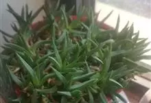 筒叶花月,是景天科青锁龙属的多年生草本植物。植株多分株,灌木状,茎较粗壮,圆柱形,表皮灰褐色;叶片肉质,互生,呈圆筒状,簇生于茎或分枝顶端,叶端呈斜截形,截面为椭圆形;花呈星状,淡白色;花期秋季。…全部>>