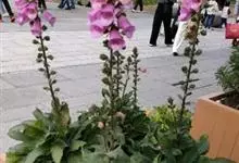 毛地黄是车前科、毛地黄属一年生或多年生草本植物。株高0.5—1米,茎直立,少分枝,全株被灰白色短柔毛和腺毛叶基生,呈莲座状,卵圆形或卵状披针形。顶生总状花序,花冠钟状,紫红色,内面有浅白斑点。菊果卵形。…全部>>