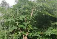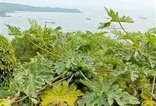 番木瓜,番木瓜科番木瓜属的常绿软木质小乔木,高达10米,具有乳汁;茎不分枝或有时于损伤处分枝;叶大且聚生于茎顶,近似盾形,叶柄中空;花单性或两性,有些品种雄株偶尔生两性花或雌花,…全部>>
