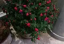 倒挂金钟是柳叶菜科倒挂金钟属亚灌木植物。茎直立,多分枝;幼枝带红色,被短柔毛与腺毛,老时渐无毛;叶对生,卵形或窄卵形,脉常带红色;常带红色,被短柔毛与腺毛;花筒红色,筒状钟形,…全部>>