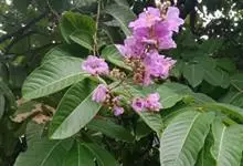 大花紫薇 Pers.),是千屈菜科紫薇属乔木植物,别名大叶紫薇,大花紫薇树皮灰色,平滑;小枝圆柱形,无毛或微被糠批状毛;叶革质,长圆状椭圆形或卵状椭圆形,稀披针形,…全部>>