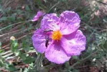 岩蔷薇是半日花科岩蔷薇属植物,多年生直立亚灌木,高约1.5-2.5米,全体具胶黏腺体。枝条褐色,侧枝分为生长枝和结果枝。单叶对生,披针形至线状披针形,长5-8厘米,宽0.5-1.5厘米。…全部>>