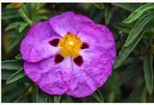 岩蔷薇是半日花科岩蔷薇属植物,多年生直立亚灌木,高约1.5-2.5米,全体具胶黏腺体。枝条褐色,侧枝分为生长枝和结果枝。单叶对生,披针形至线状披针形,长5-8厘米,宽0.5-1.5厘米。…全部>>